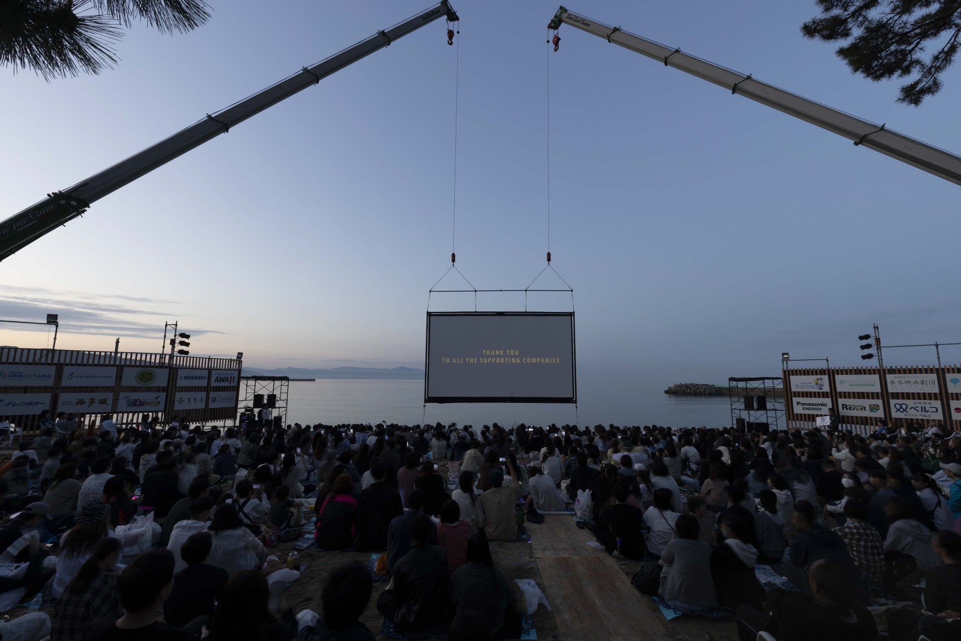 びわ湖岸に440インチの巨大なスクリーンが登場。びわ湖と月を眺めながら映画を楽しむことが