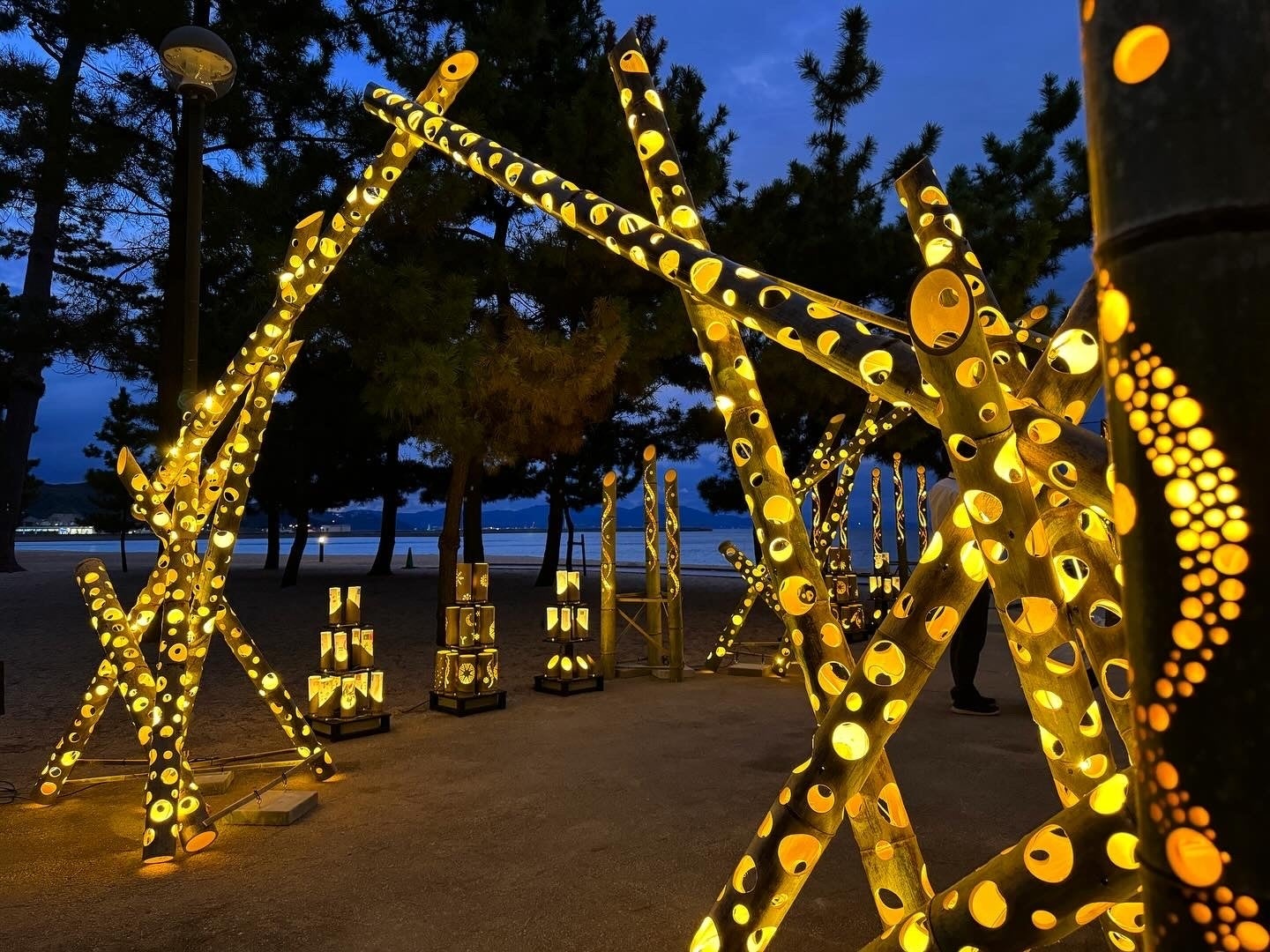 大津市を代表するびわ湖のビュースポットで【竹】×【ヨシ】で出来た灯りのオブジェを展示。