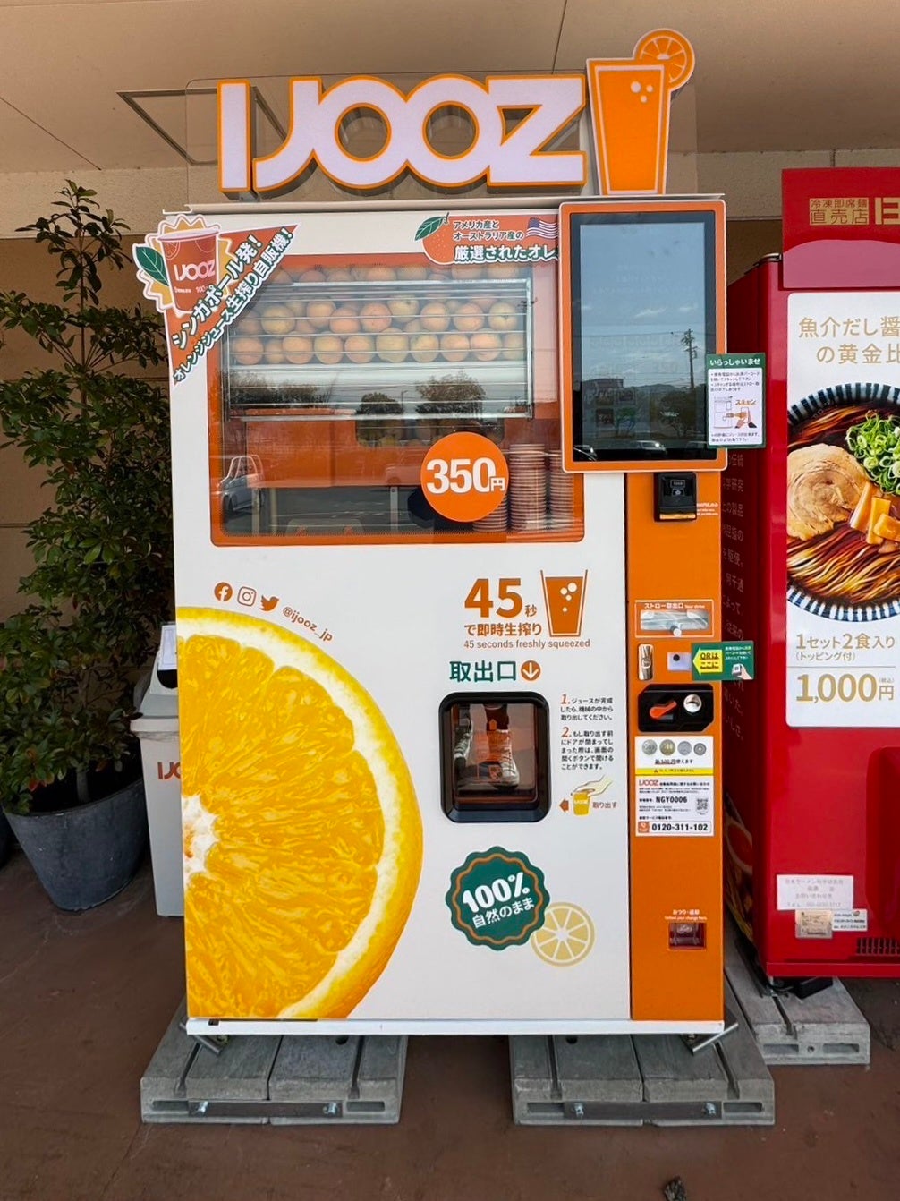 イオンタウン芸濃に設置の生搾りオレンジジュース自販機IJOOZ